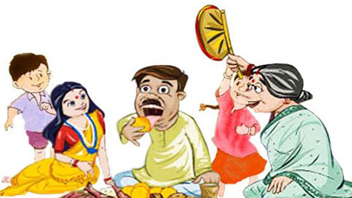 একসময় জামাতা বাবাজীবনরা মিষ্টির হাঁড়ি হাতে, ফিনফিনে সাদা মসলিনের পাঞ্জাবি আর মালকোচা মারা ধুতি পরে শ্বশুরঘরে রওনা হত। এখন প্যান্ট-শার্ট পরে ওলা-উবের চড়ে হাজির হয়। তারপর শুধু চর্ব্য, চোষ্য ভোজন-ভজন। আম-কাঁঠাল, ইলিশ-রুই, কচিপাঁঠা, সন্দেশ-রসগোল্লা, আইসক্রিম— কনভয়ের মতো আসতে থাকে। রবি ঠাকুর লিখছেন, ‘ডাক পড়েছে অধ্যাপকের/ জামাইষষ্ঠী পার্বণে—/ খাওয়ায় তাকে যত্ন করে/ শাশুড়ি আর চার বোনে।’ আগে তো জামাইয়ের বাড়িতে ষষ্ঠীর তত্ত্ব হিসাবে আম-কাঁঠাল ইত্যাদি ঝাঁকায় করে পাঠাতে হত। এখনও হয়ত গাঁয়ের দিকে চল আছে।