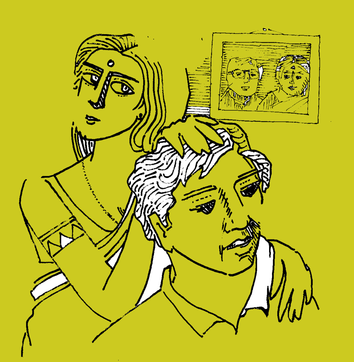 খোলা দরজায় এক মহিলা। তারা গলা তুলল, ঝুনুদি, ভেতরে এসো।