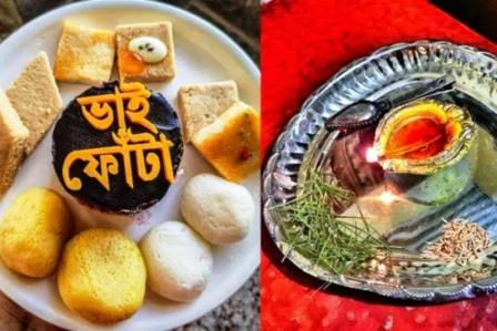 খাওয়া–দাওয়ার আয়োজনেও কিন্তু কিছু কমতি ছিল না। সামনে মিষ্টির থালা সাজিয়ে ফোঁটা হত বটে, কিন্তু তারপর ছিল ভুরিভোজের ব্যবস্থা। শুক্তো দিয়ে শুরু করে, চাটনি ও পায়েস দিয়ে শেষ, আর থাকতো কতজনের আনা কত রকমারি মিষ্টি।