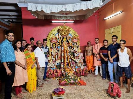 এ বছর পুজো অনুষ্ঠিত হল শোভাবাজারে। রূপোর অলংঙ্কারে সাজানো হয় মা দুর্গাকে। খাঁড়া থেকে ত্রিশূল, পদ্ম সবই রূপোর। মায়ের জন্য একেকদিন একেকরকম ভোগের ব্যবস্থা থাকে। যেমন মন্ডা–মিঠাই, ক্ষীর, ছানা, নানারকম সন্দেশ, উপ্রা ইত্যাদি। রোজই মাকে উৎসর্গ করা হয় কুমড়ো, চাল কুমড়ো, মানকচু, নারকেল, বাতাবি লেবু ও আখ। মহালয়ার আগে পঞ্জিকানুযায়ী শুভ তিথিতে পরিবারের সব মহিলা সদস্যরা এক জায়গায় মিলিত হয়ে বানান দুর্গা ও লক্ষ্মী পুজোর নারকেল নাড়ু, ক্ষীরের নাড়ু, মোয়া, উপ্রা ইত্যাদি।