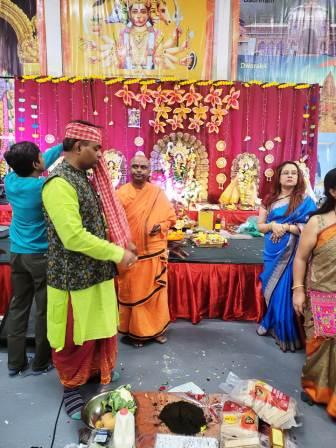 ভিএইচসিসিআই মন্দিরে আয়োজিত পুজো সবচেয়ে অন্যমাত্রা নিয়েছে। এখানে সন্ধিপুজোর আয়োজনে রয়েছেন সুদীপ সান্যাল ও সঙ্ঘমিত্রা সান্যাল।