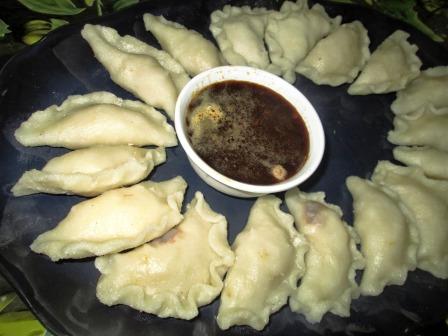 ২) ভাপা পিঠে: চালের গুঁড়ো আর গুড় এই পিঠের মূল উপাদান হলেও নারকেলের শাঁস এই পিঠের স্বাদ বাড়াতে সাহায্য করে। চালের গুঁড়োয় সামান্য নুন ও জল মিশিয়ে চালুনি দিয়ে চেলে নারকেলের শাঁসকে থেঁতো করে খেজুর গুড় সহযোগে পাতলা কাপড় দিয়ে পেঁচিয়ে ঢাকনা দেওয়া হাঁড়ির জলীয় বাষ্পের আঁচে ভাপ দিয়ে প্রস্তুত করা হয় এই পিঠে। ভাপ দিয়ে তৈরির জন্যই এই পিঠেকে ভাপা পিঠে বলে। এই পিঠে প্রস্তুত করতে নিচ দিকে ছিদ্র করা একধরনের মৃৎপাত্রও ব্যবহৃত হয়, যাকে সিলেট অঞ্চলে গাইয়াড়ি বলা হয়। এই গাইয়ড়ি হাড়ির পরিবর্তে ব্যবহৃত হয়।