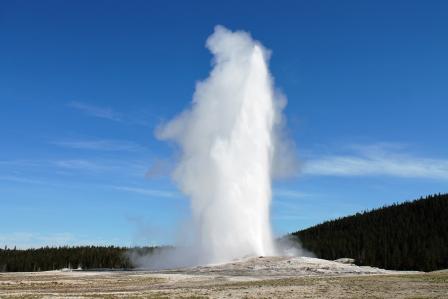 ইয়েলোস্টোন ন্যাশনাল পার্কে পাঁচটি প্রবেশদ্বার আছে। দক্ষিণ দিকের প্রবেশ দ্বার দিয়ে ঢুকে আমরা প্রথমে আপার গিজার বেসিনের দিকে অগ্রসর হলাম। এটি সর্বাপেক্ষা পরিচিত গিজার বেসিন। দেখি মাটির উপর যেন একটি বিশাল আকার উনুন। তার মুখ দিয়ে অনবরত ধোঁয়া নির্গত হয়ে পার্শ্ববর্তী গাছের উপর দিয়ে মিলিয়ে যাচ্ছে। এটি হচ্ছে পৃথিবী বিখ্যাত ওল্ড ফেইথফুল গিজার (যদিও সর্বোচ্চ বা অতি নিয়মিত নয়)। এখানে ঘনঘন উদগীরণ হয় প্রায় ৯০ মিনিট অন্তর, ফোয়ারার উচ্চতা হয় ১০৬ থেকে ১৮৪ ফুট, স্থায়িত্ব দেড় থেকে পাঁচ মিনিট, প্রতিবারে ৩,৭০০ থেকে ৮,৪০০ গ্যালন জল ছাড়ে।